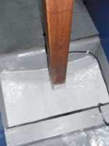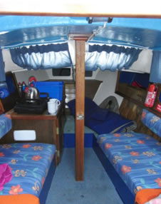 ANTI COMPRESSION POST & SALOON TABLE DESIGNED AND FITTED IN A HURLEY FELICITY Kevin Mitchell Joiner 'WOODWORX' Gerry Arbon the current owner of Celtic Nomad, a smart little Hurley Felicity commissioned me in the latter part of last year to fit an anti compression post into his boat. At the time he had released the tension on his shrouds and was gradually raising the cabin roof using a scissor jack and short post. My design incorporated a special head fitting which comprised a block of solid mahogany with four holes cut out to accommodate the nuts on the underside of the mast base plate and also a shallow raised edging for the post to fit into to prevent it sliding around. The bottom of the post rests flat and centrally in the bilge and sits on a thin bead of Sikoflex. Gerry then finished it off by glassing around the base. The end result looks as though it has always been there but did require me to cut two new pieces of plywood flooring to fit around the post and the old carpet was carefully prized away form the discarded boards and then re fitted to the new wood.