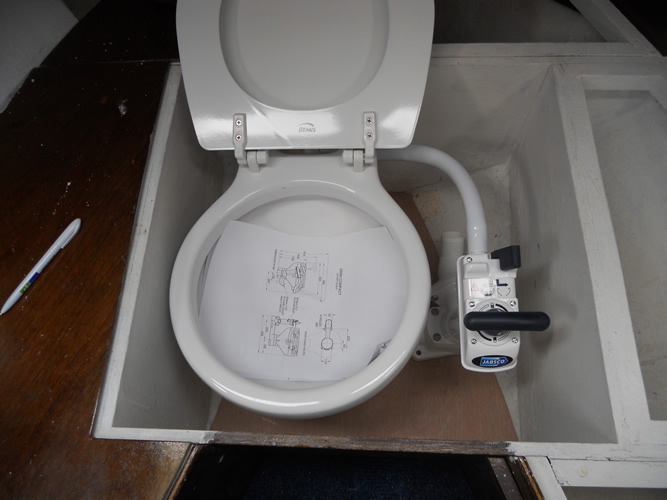 retain the forward saloon cushions when sea toilet not in use.